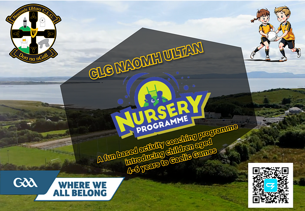 CLG Naomh Ultan are delighted to have recently established a Nursery group within the club - a fun, activity-based coaching programme introducing children aged 4โ6 to Gaelic Games.