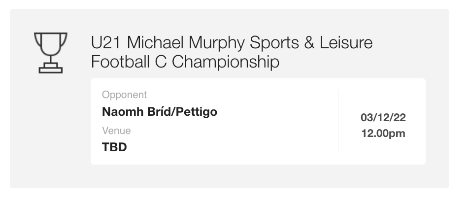 Our U21 team are currently due to play in the U21C Michael Murphy Sports & Leisure Quarter Finals this Saturday, December 3rd. Naomh Brid/Pettigo are in opposition with throw-in penciled in for 12pm. Venue is yet to be decided, keep an eye on our website and social media pages for more information.